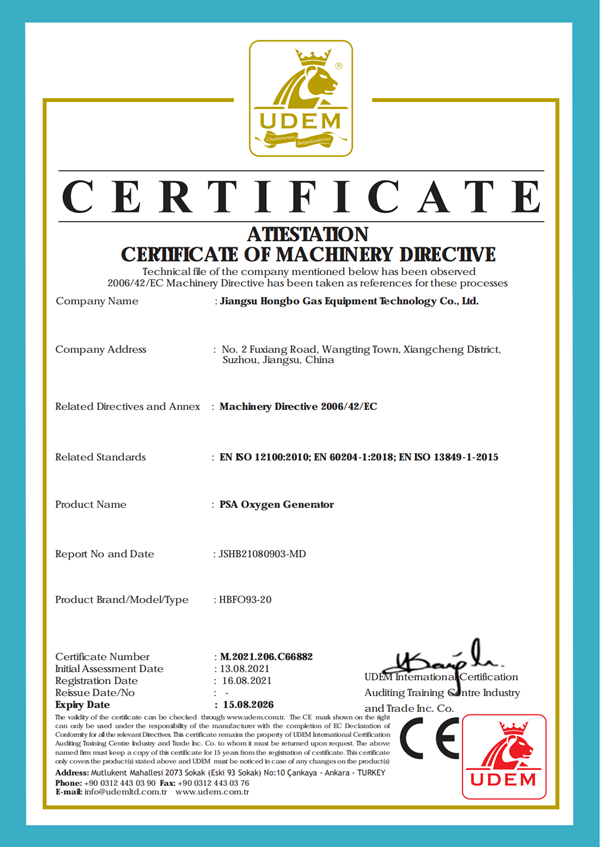 制氧機CE證書