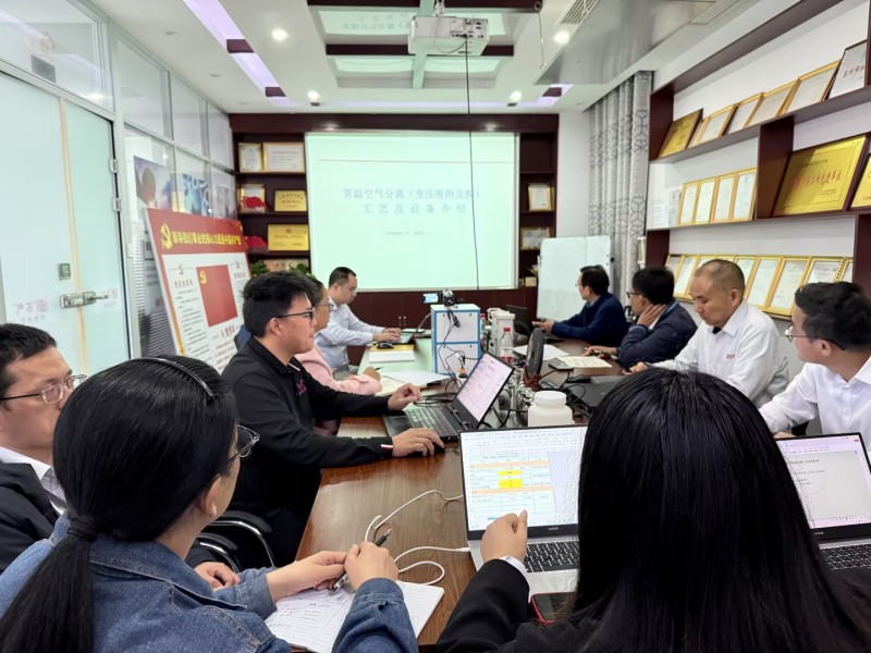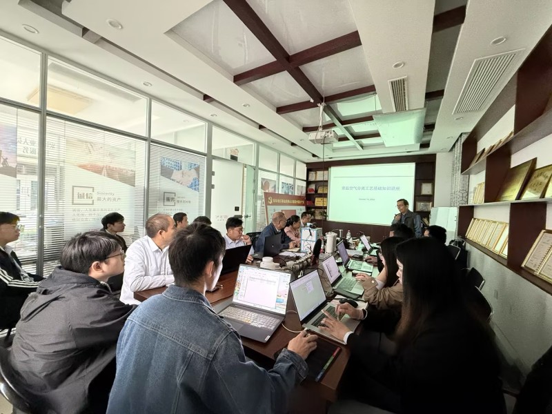 培訓(xùn)中,沈老師簡要介紹了本次培訓(xùn)的目的,并結(jié)合氣體設(shè)備市場,重點(diǎn)介紹了常溫空氣分離工藝基礎(chǔ)知識、常溫空氣分離(變壓吸附及膜)工藝及設(shè)備、碳分子篩及變壓吸附制氮技術(shù)、壓縮空氣膜干燥工藝及設(shè)備等知識,通過深入淺出的現(xiàn)場講解和提問方式,鼓勵(lì)學(xué)員們主動(dòng)思考、積極發(fā)言。